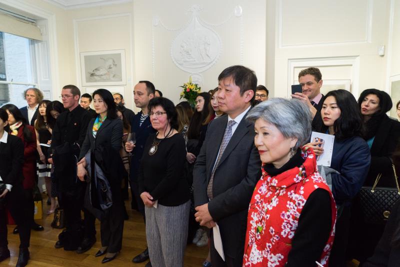 在開幕儀式上,中華人民共和國駐英使館公使銜參贊項曉煒做了精彩致辭,為西方友人介紹了工筆畫的歷史、發(fā)展以及審美價值以及此次展覽對促進(jìn)中英文化發(fā)展的作用與意義。