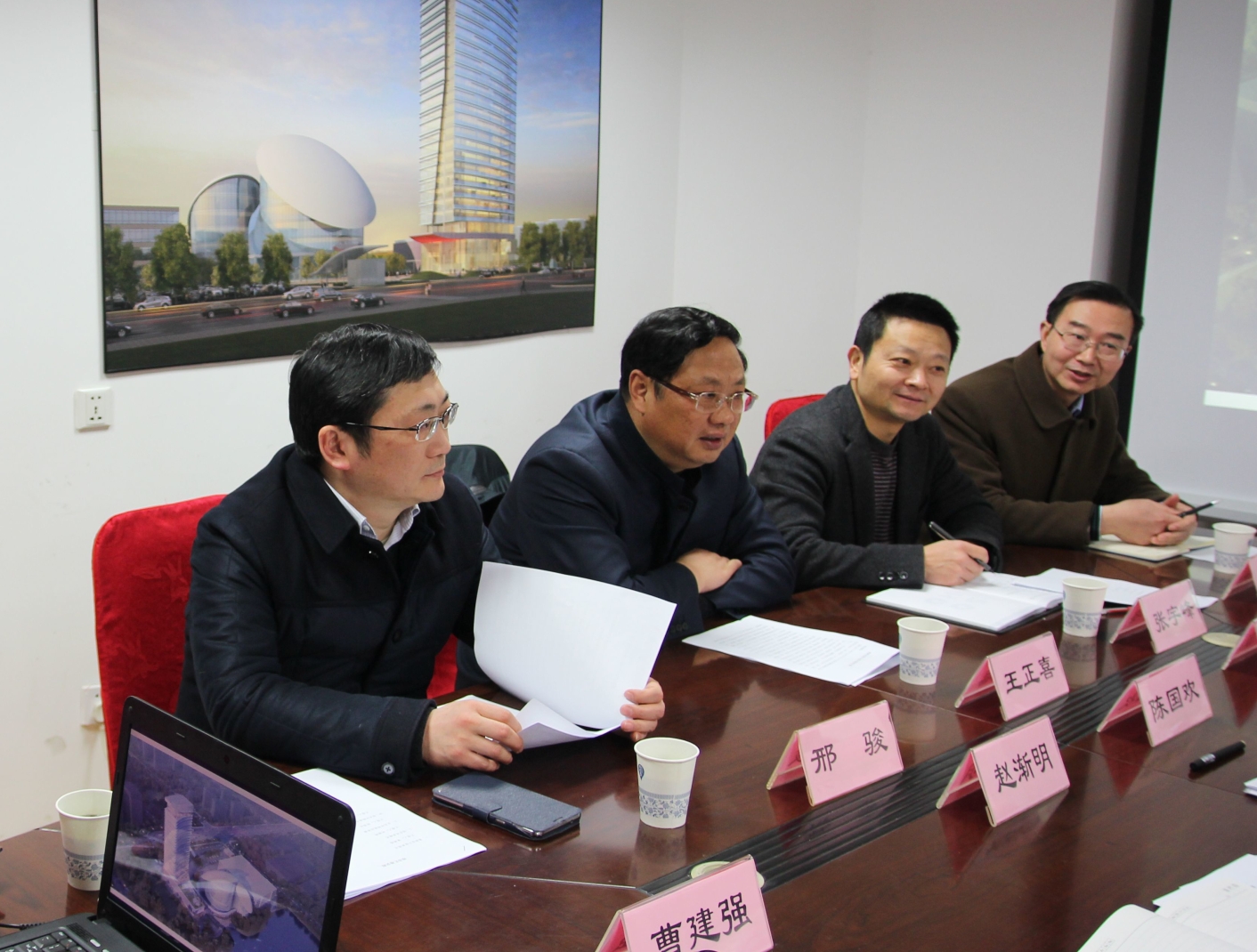 愛濤文化創(chuàng)意中心項目部團隊向王正喜詳細(xì)介紹了文創(chuàng)中心的外部設(shè)計、內(nèi)部功能、工程進度計劃和文創(chuàng)產(chǎn)業(yè)園的業(yè)態(tài)布局等。