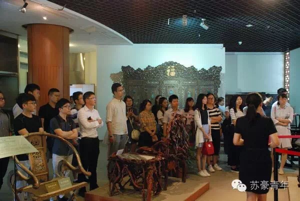 活動歷時半天,團員青年先跟隨講解員的步伐,參觀了藝術(shù)館館藏珍寶。從刺繡絲織民俗館到紅木雕刻家具館再到玉石陶瓷漆器館、字畫館等。現(xiàn)場的年輕同事很多都是第一次看到如此眾多的珍寶,被工藝精品的藝術(shù)魅力深深折服。