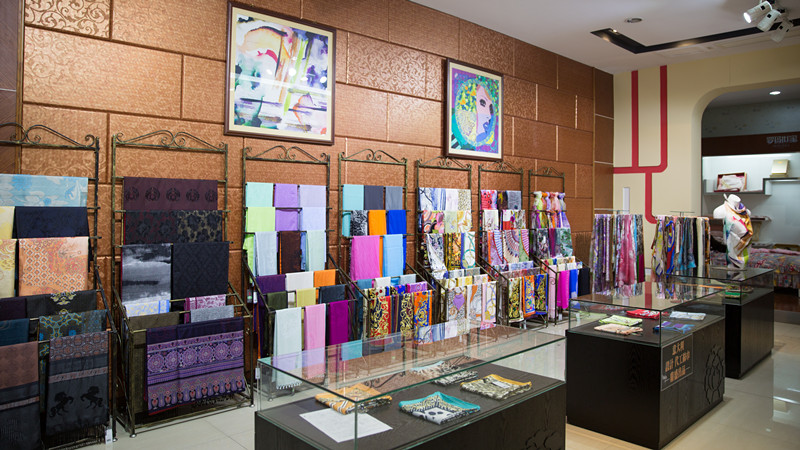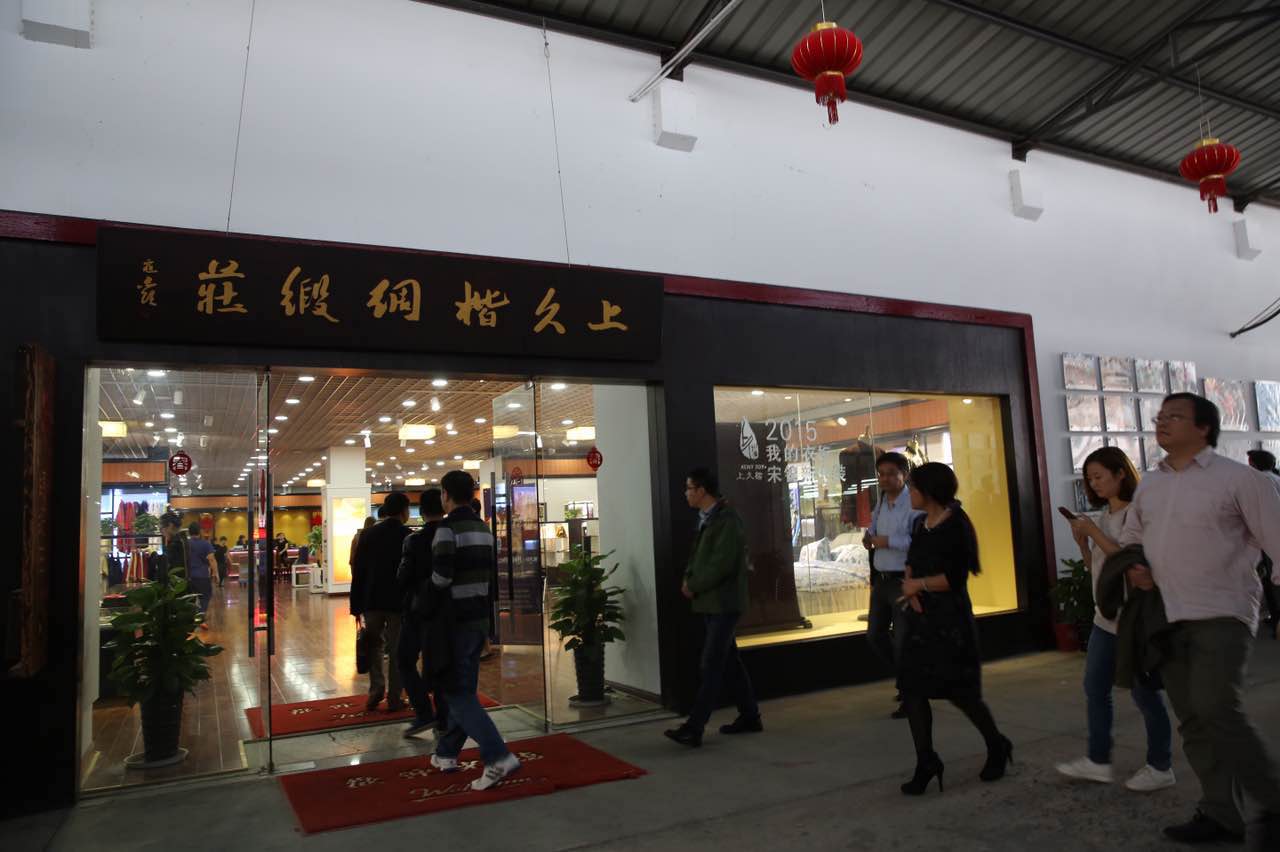 抵達盛澤后,蘇豪傳媒單鳳艷副總經理帶隊參展商參觀非遺宋錦館,零距離觸摸APEC領袖風采,分享國禮之尊。隨后參觀了先蠶祠、華佳絲博園,了解綢都絲韻水鄉(xiāng),感受中國紡織名鎮(zhèn),流行面料發(fā)布基地對絲綢的膜拜。