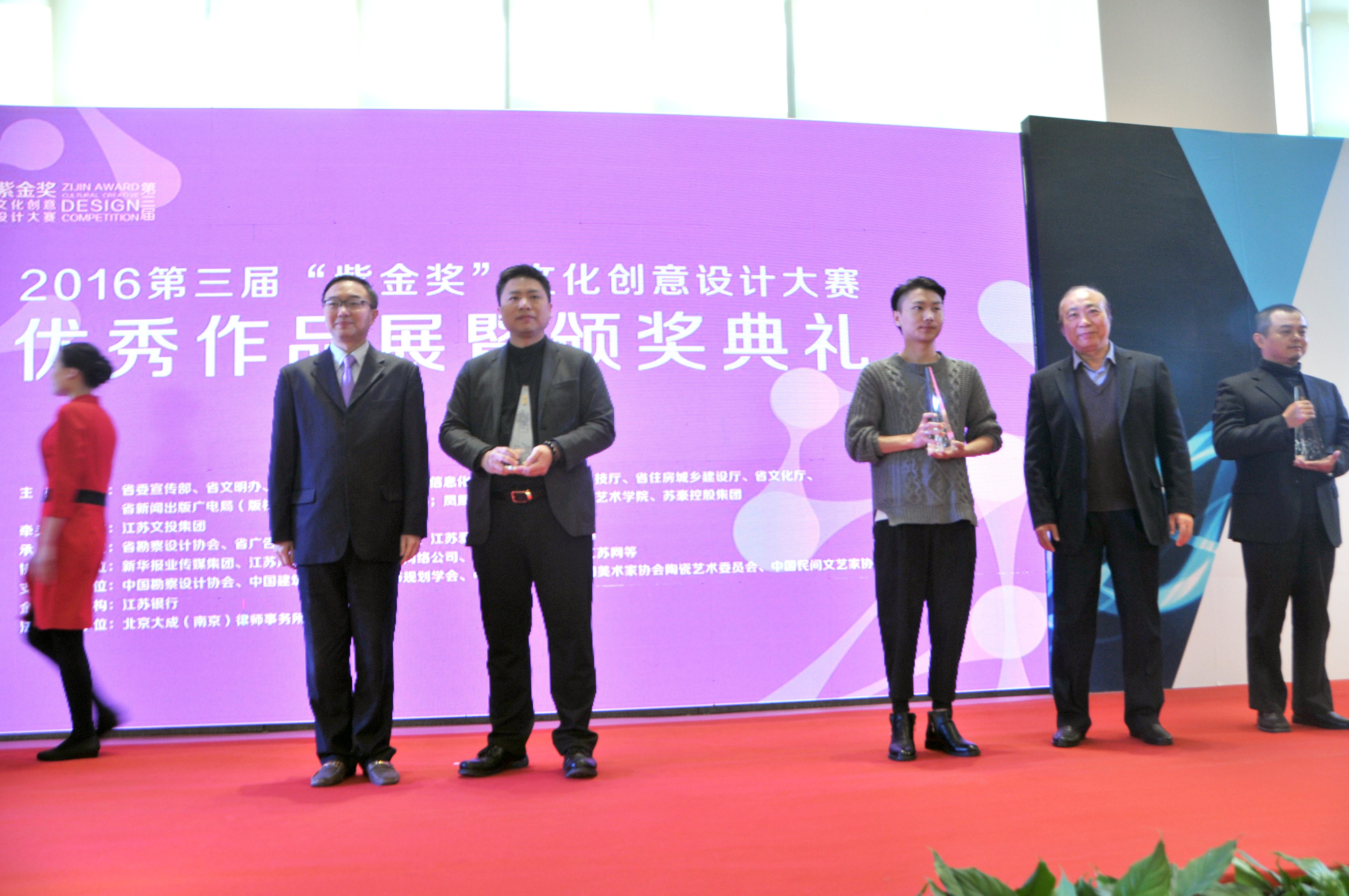 11月11日,第三屆“紫金獎(jiǎng)”文化創(chuàng)意設(shè)計(jì)大賽優(yōu)秀作品展暨頒獎(jiǎng)典禮在南京河西新城紫金文創(chuàng)園舉行。大賽由江蘇省委宣傳部、江蘇省蘇豪控股集團(tuán)等14家單位聯(lián)合主辦,江蘇文投集團(tuán)牽頭承辦,江蘇愛濤文化產(chǎn)業(yè)有限公司具體承辦現(xiàn)代手工藝設(shè)計(jì)大賽暨優(yōu)秀作品展。蘇豪控股集團(tuán)總裁出席頒獎(jiǎng)典禮,并為現(xiàn)代手工藝設(shè)計(jì)大賽金獎(jiǎng)獲得者頒獎(jiǎng)。