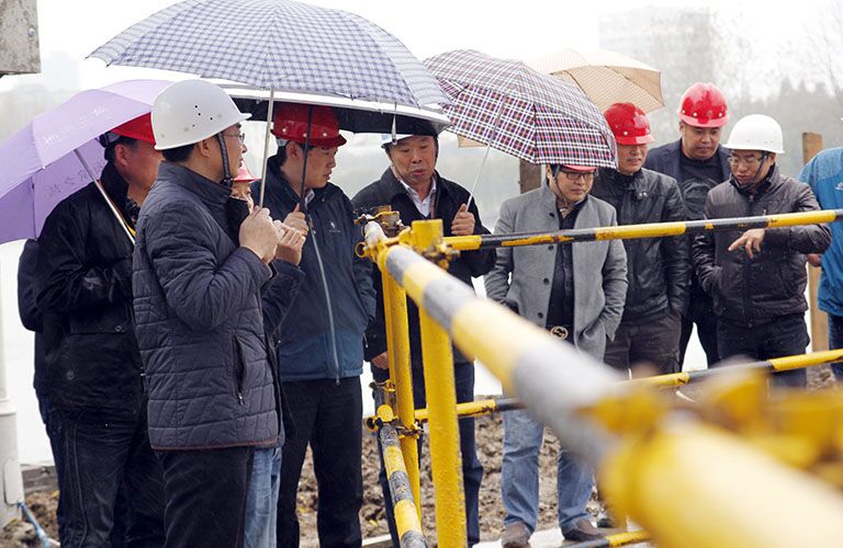 會后,在項(xiàng)目部、總包和監(jiān)理單位陪同下,張發(fā)松一行進(jìn)入工地現(xiàn)場進(jìn)行視察。