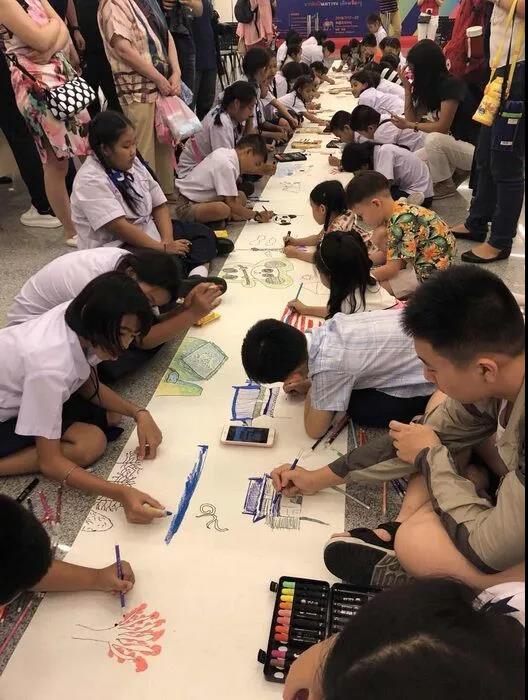 每一次“文化行走”,學(xué)生們必進(jìn)當(dāng)?shù)馗咝#牳咝=處煹膶n}文化講座或與高校學(xué)生一起互動。譬如帶學(xué)生們進(jìn)入泰國孔堤公學(xué),與泰國的中小學(xué)生親密互動,共同作畫。在今后的研學(xué)活動中,導(dǎo)師們還會給學(xué)生帶來“一帶一路”、“區(qū)域環(huán)境差異”等專題課程。